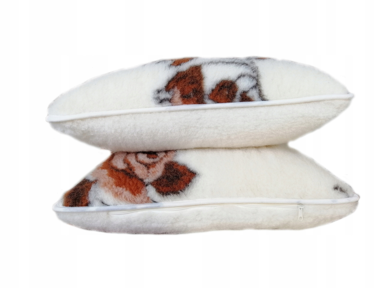 PODUSZKA USZYTA JEST Z DWÓCH WARSTW 100% DZIANINY WEŁNIANEJ Z MERYNOSÓW EUROPEJSKICH O GRAMATURACH 450G/M2 I 400G/M2